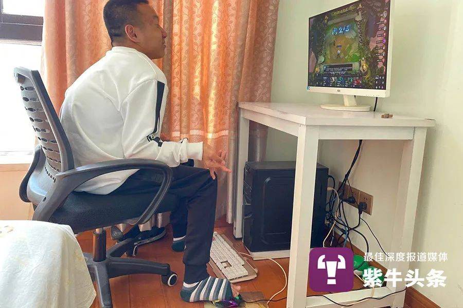 皓皓左脚控制键盘、右脚控制鼠标皓妈告诉记者,2020年6月,皓皓在刚满18周岁后便申请了一个直播账号,每天用脚直播打游戏。在做直播的过程中,总会遇到一些人在弹幕上骂他是个傻子,但是皓皓每次都会笑着说:“没事,我已经习惯了,妈妈你不用担心。”