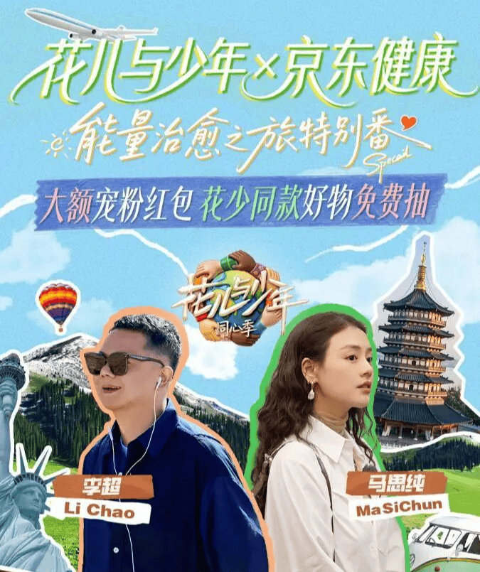 无独有偶,10月25日,由京东健康独家冠名的《花少·同心季》制片人李超与本季成员马思纯出现在京东健康采销直播间。官方在前期官宣海报上就打出了“1元起拍健康好物,送花少同款之旅”的宣传语,直播期间不仅有关于产品的推荐,还有关于节目的问答,而直播中马思纯推荐杨紫来花少更是登上微博热搜,成为热议内容。此外,在此次直播之前,京东健康就已经在“心脑养护采销直播间”等推出直播特别企划,直播内容包含沉浸式陪看节目、科普心脑知识、深度解读旅途中如何守护健康等环节,将直播与京东健康、综艺节目连接在一起。