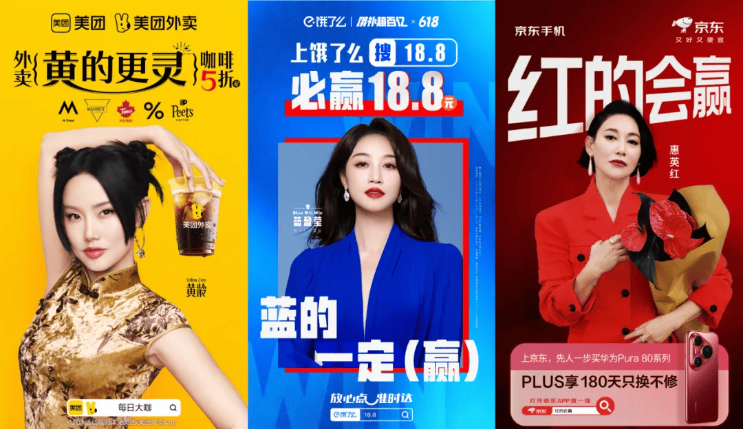 在2025年以京东、淘宝天猫等为代表的平台、品牌都选择了“明星合作矩阵”作为其中一个营销动作,尤其是配合节点营销。而去年由美团、饿了么、京东联合贡献的营销事件,也是借助代言人名字的谐音梗让效果加倍。