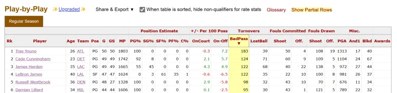 虎扑02月12日讯 今日,数据媒体Basketball Reference列出了本赛季至今联盟各名球员传球失误的次数,老鹰球员特雷-杨183次遥遥领先。