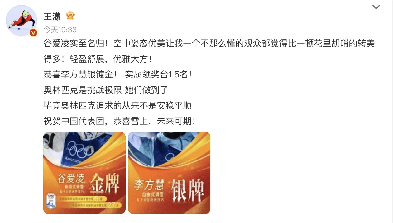 谷爱凌夺冠,实至名归。空中姿态优美到让我一个不太懂的观众,都觉得比一顿花里胡哨的空中旋转,美得多!轻盈会展,优雅大方。